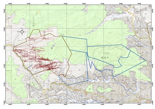 - Gold veins at Yamagano appear associated with a particular geophysical feature, an area of anomalously high gravity, thought to represent a buried uplift, or dome, in underlying denser basement sedimentary rocks. Such a geologic feature is believed to have focused gold-depositing hydrothermal fluids to ascend into overlying faults and fissures where they formed extensive high-grade vein networks. A gravity high was recognized very early as an important control at the Kushikino gold mine (56 tonnes or 1.80 Moz gold produced) situated approximately 39 km southwest of Yamagano. In fact, based upon this geologic model, initial targeting of the famous Hishikari deposits (248.2 tonnes or 7.98 Moz gold produced) was driven largely by recognition of an anomalous gravity high underlying that area. Irving believes the gravity high at Yamagano reflects a buried dome of basement rock and that, given the large footprint of this feature, there is considerable prospectivity for veins elsewhere across the property.